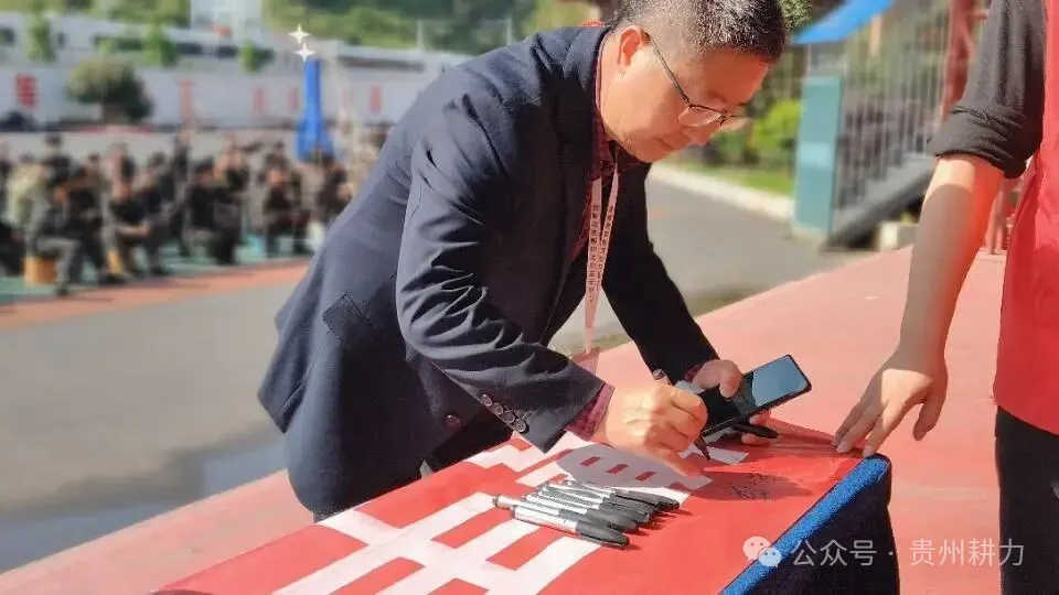 活动高潮,基地领导、老师和同学们依次在“播州青协携手耕力 探秘自然践行低碳”的横幅上郑重签名。每一个名字都是一份承诺,每一次落笔都是一次决心。最后,全体参与者在盎然春意中合影留念,记录下这个充满意义的日子。
